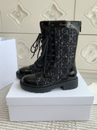 CD D-Unit Ankle Boot In Black Tweed Fabric And Glossy Cowhide 105086