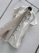 CD 2025 Short-sleeved Shirt Dress Light Beige Cotton