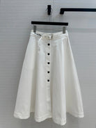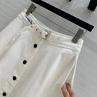 CD 25 Belted Single-breasted Long Skirt White Cotton