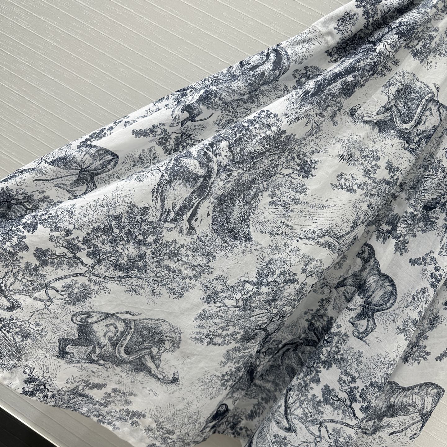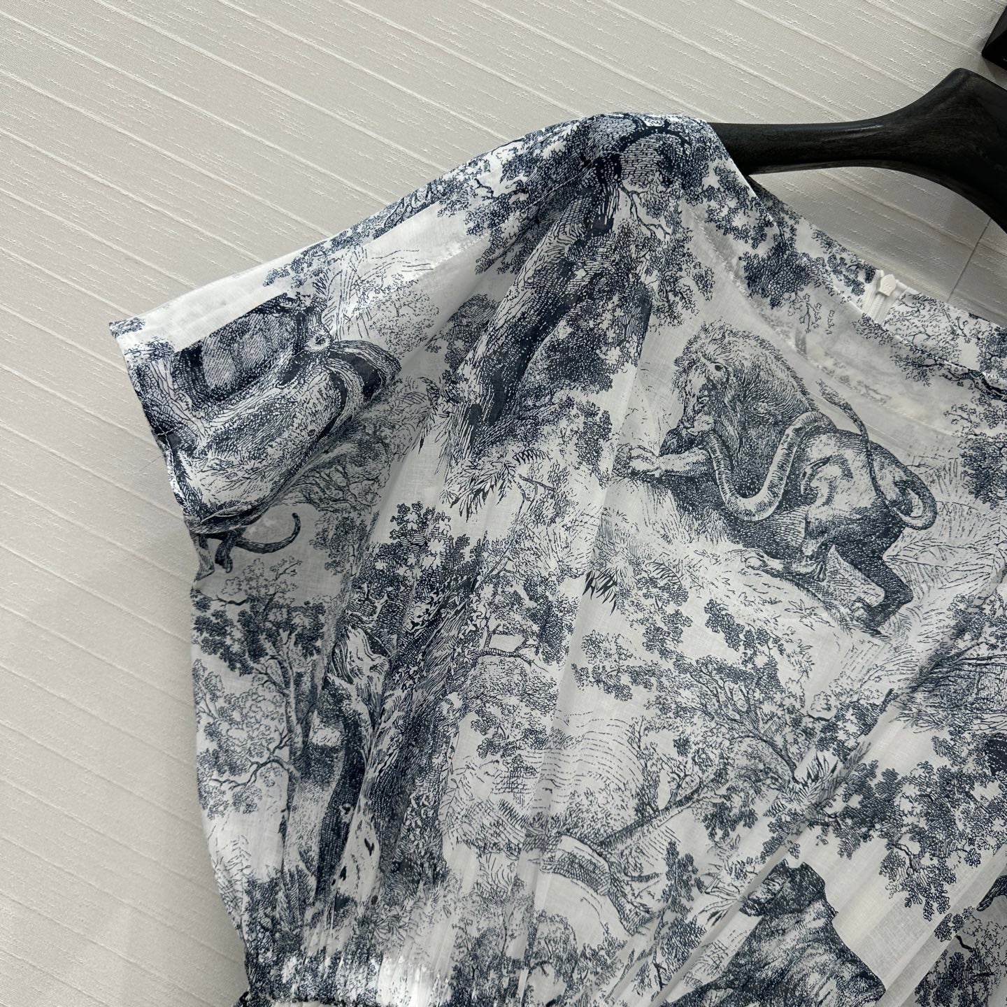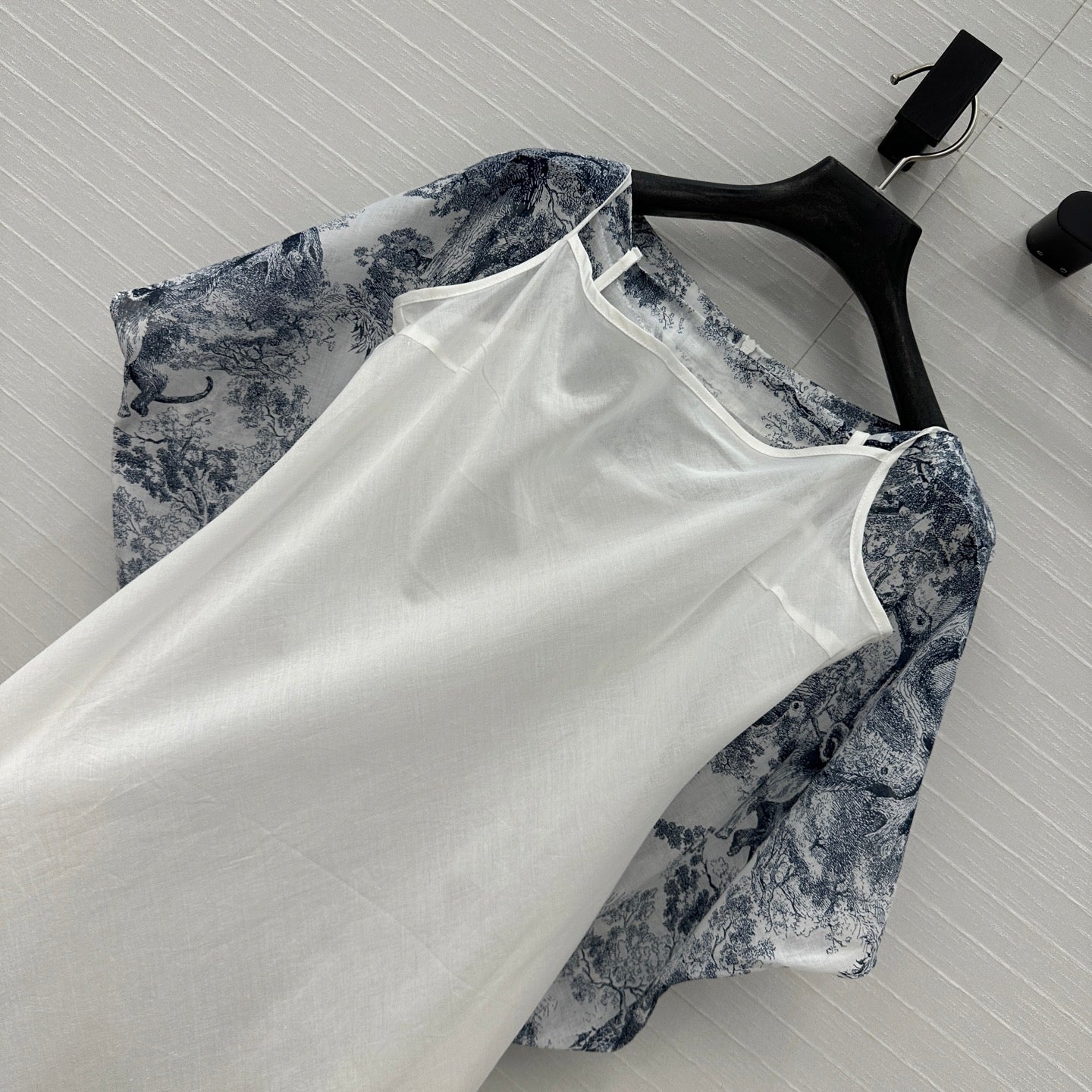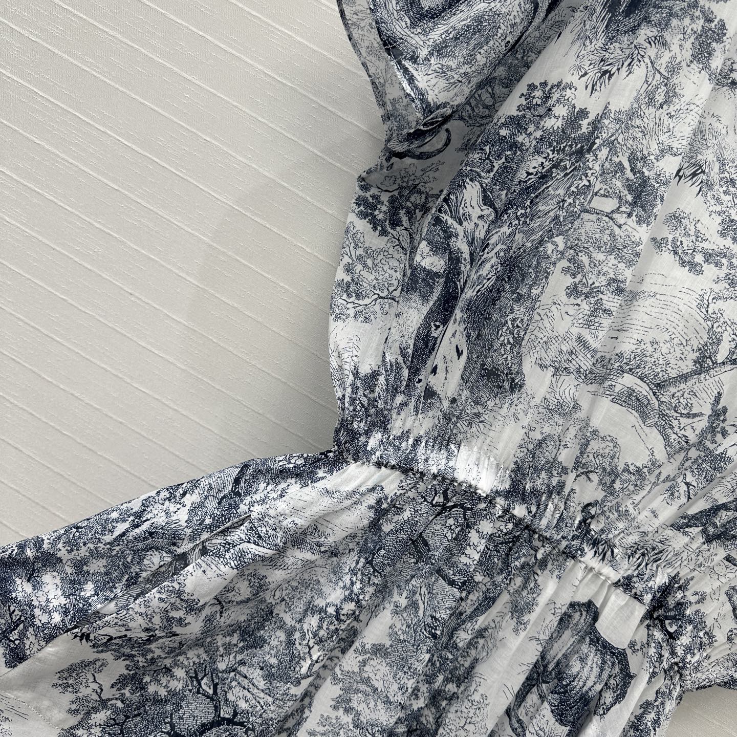 CD 25 Boat Neck Long Skirt Blue White Cotton