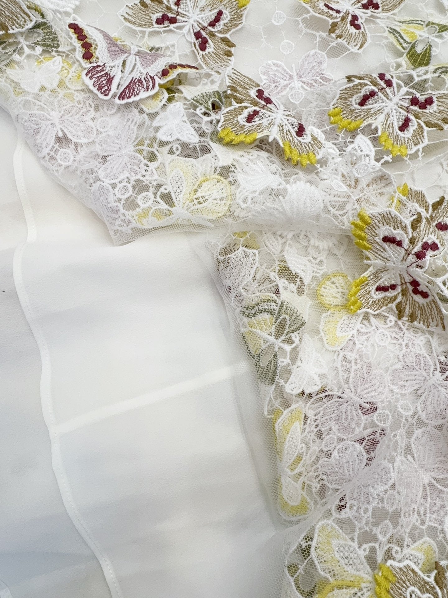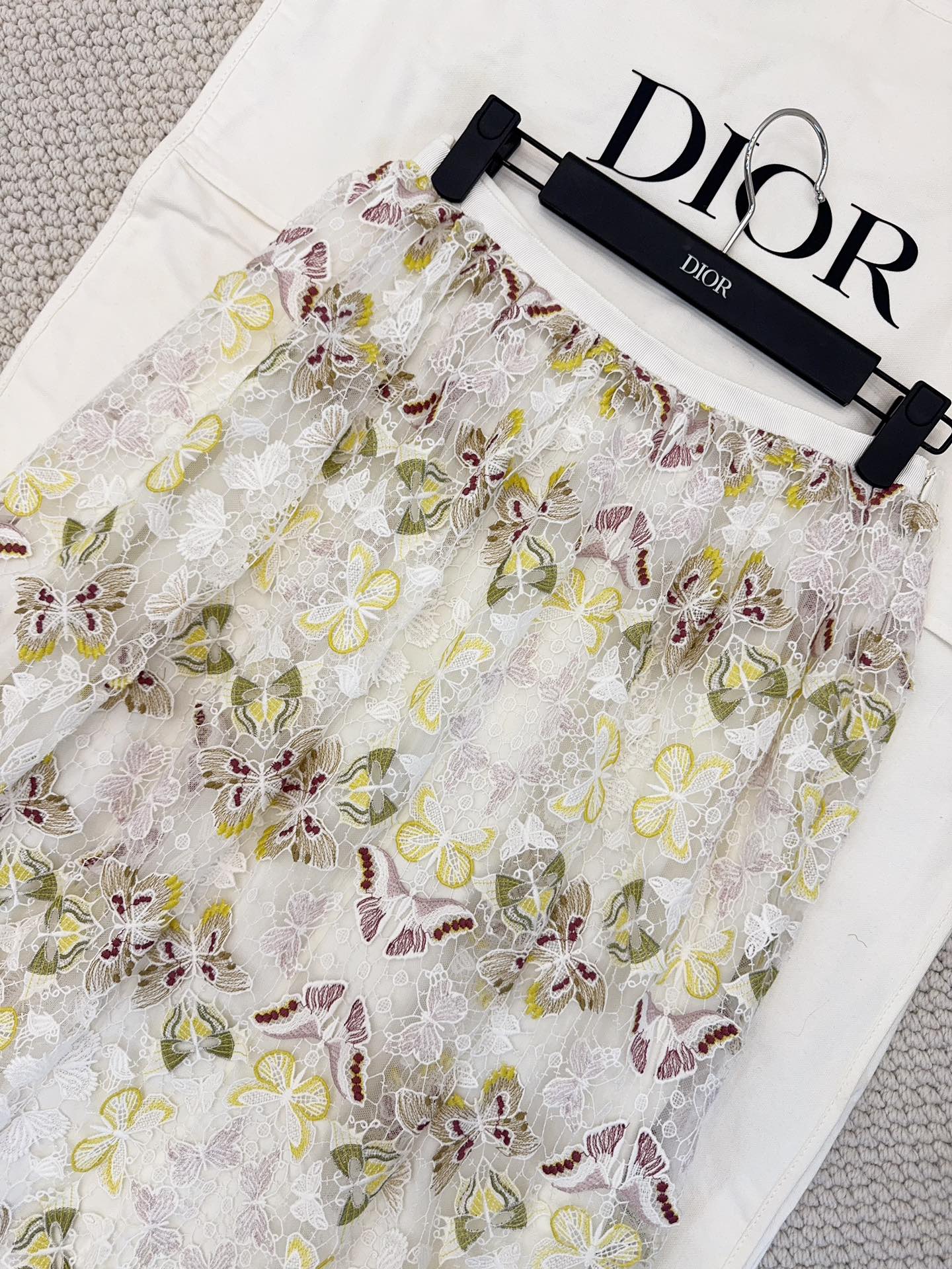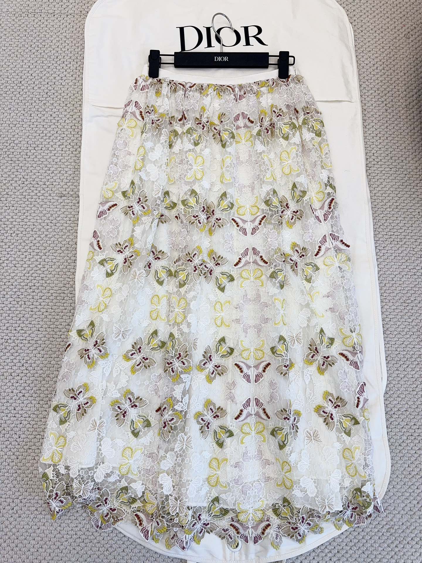 CD 25 Butterfly Embroidered Long Skirt Lace Silk