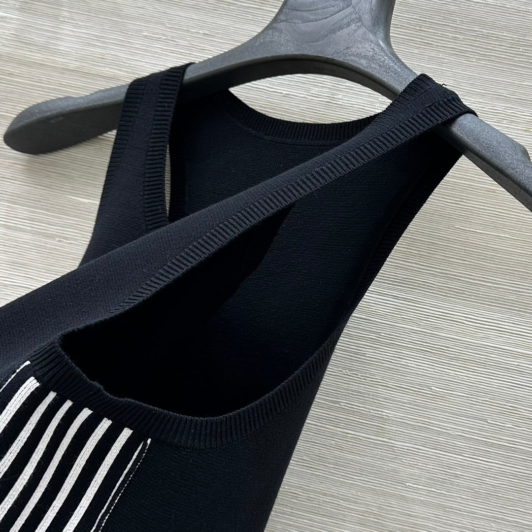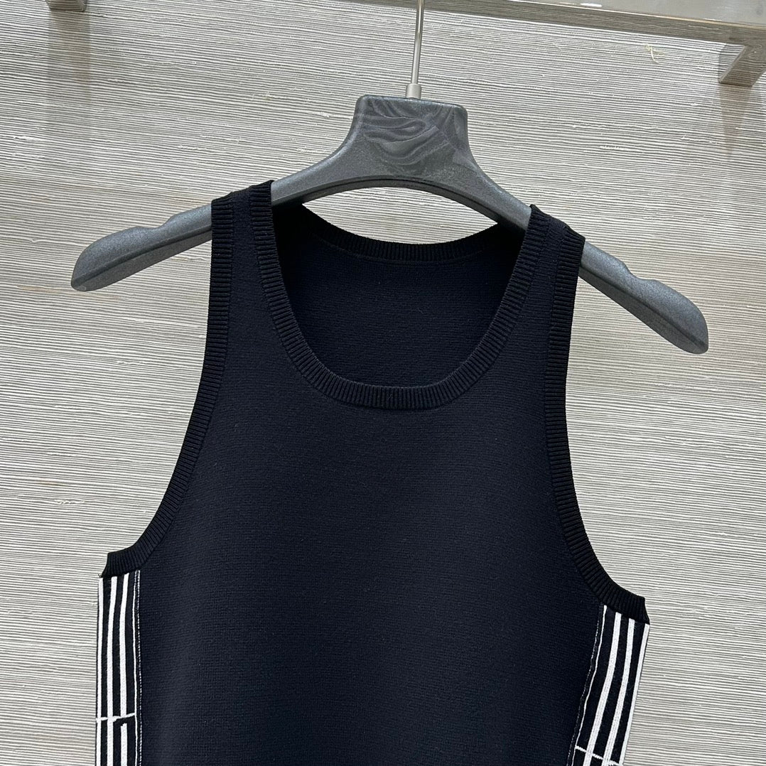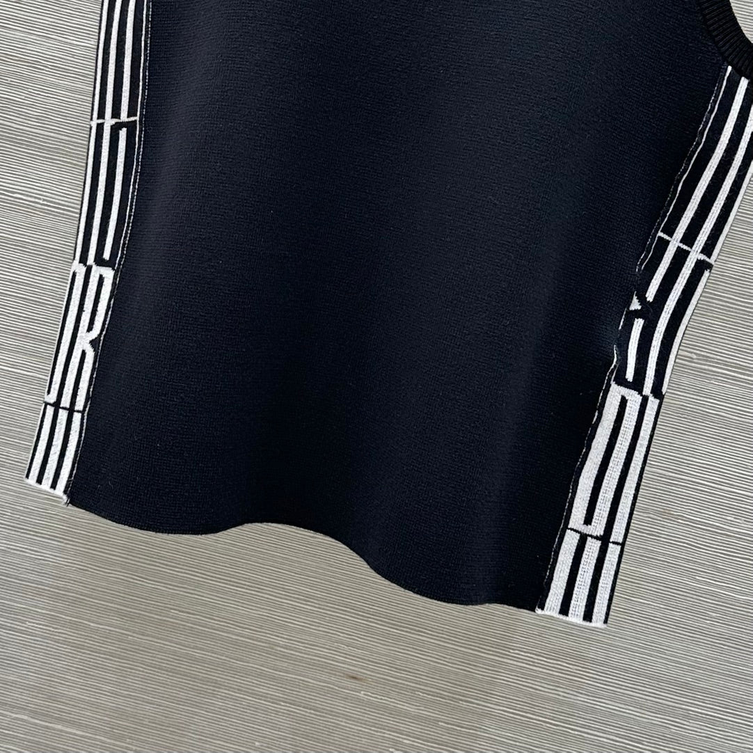 CD 25 Embroidery Knitted Vest Top Black Polyester Cotton