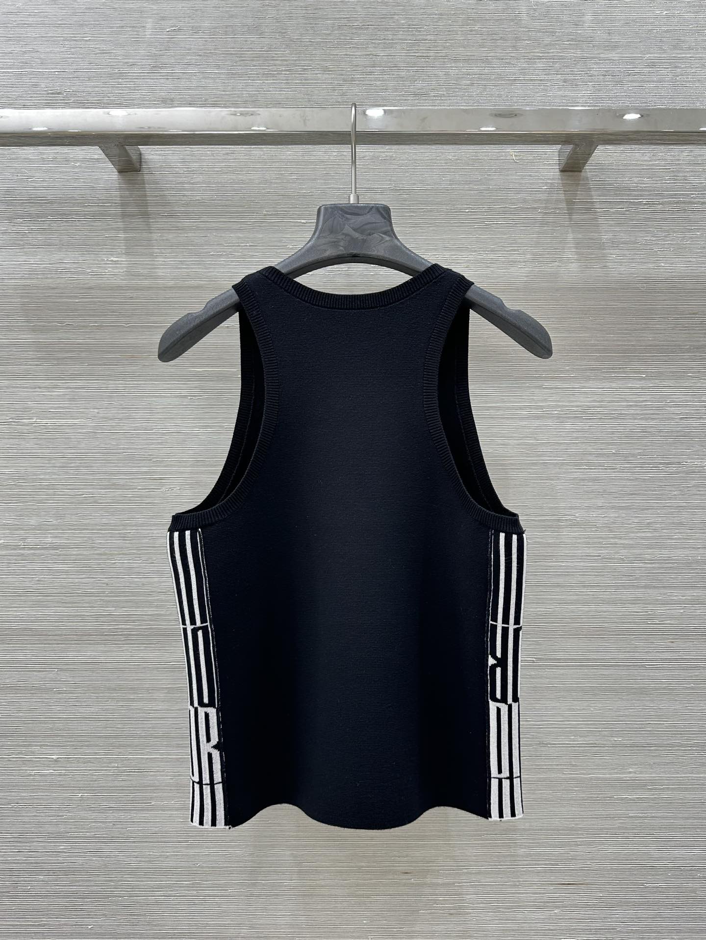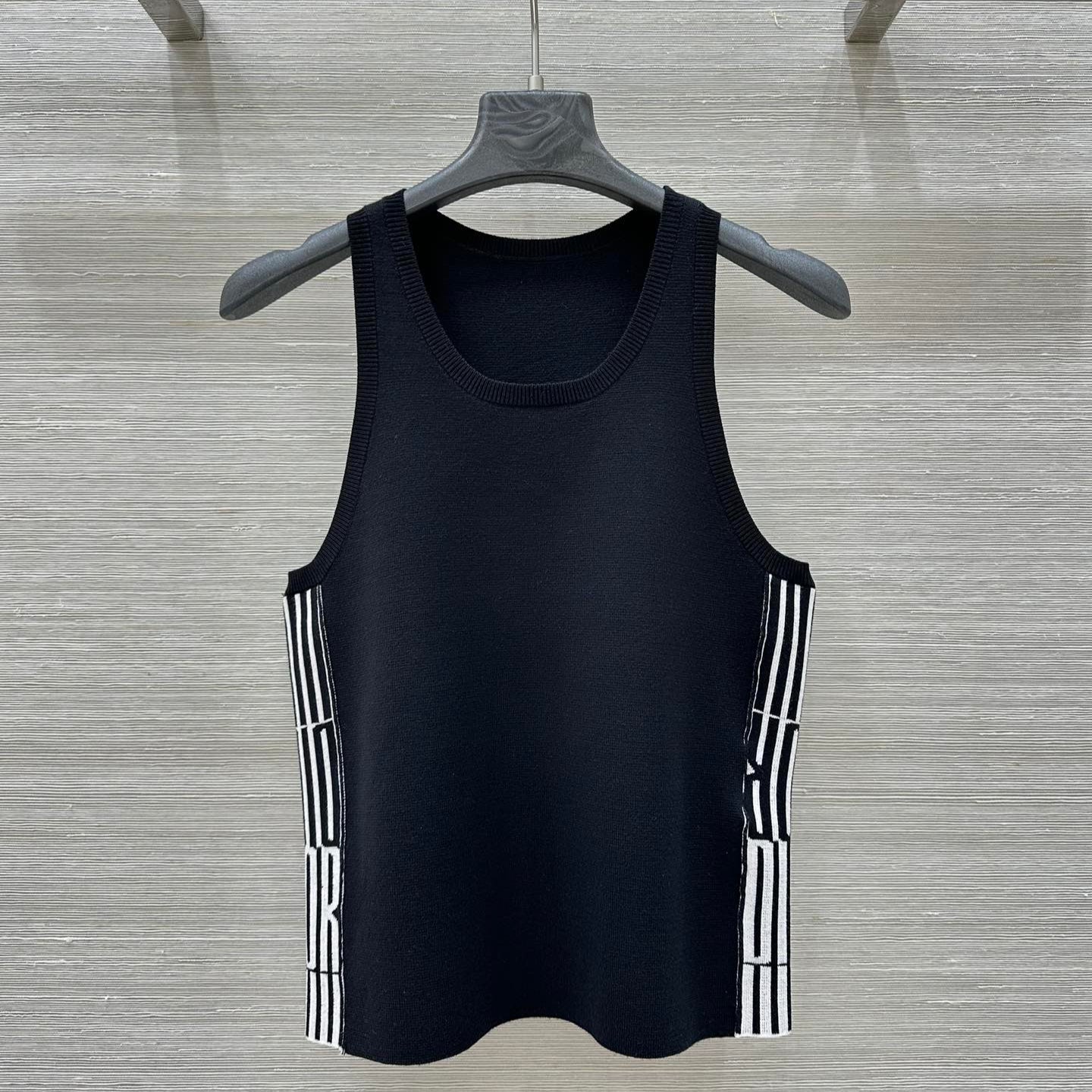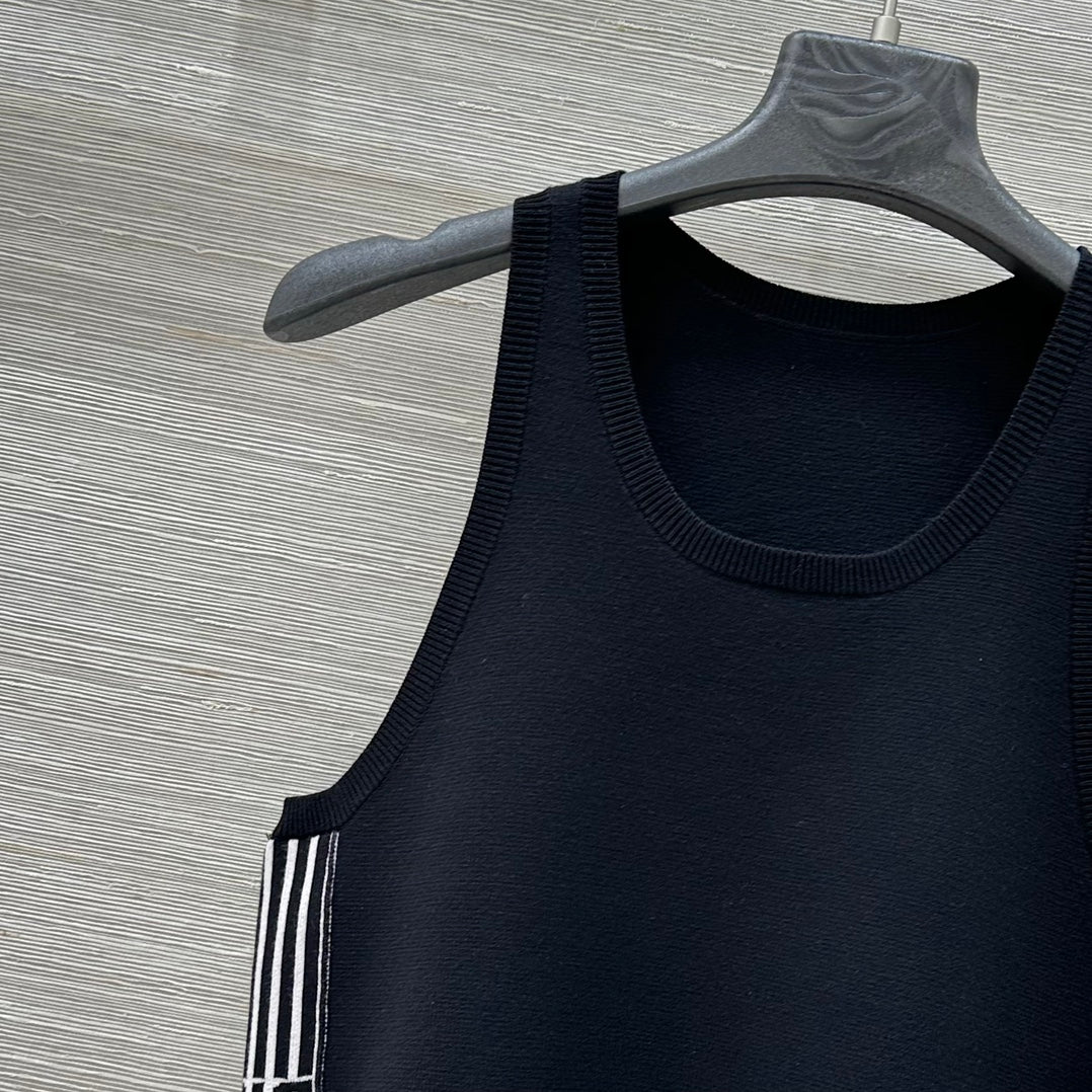 CD 25 Embroidery Knitted Vest Top Black Polyester Cotton