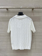 CD 25 Hollow Polo Knitted Short-sleeved Top White Silk Wool
