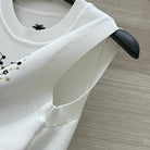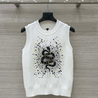 CD 25 Snake Embroidery Knitted Vest Top White Tencel Wool