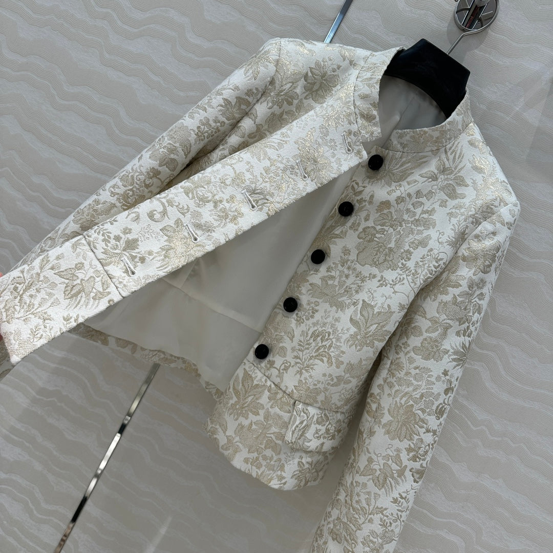 CD 25 Stand-up Collar Short Jacket Beige Actylic