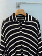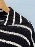 CD 25 Striped Knitted Long-sleeved Top Black Cotton
