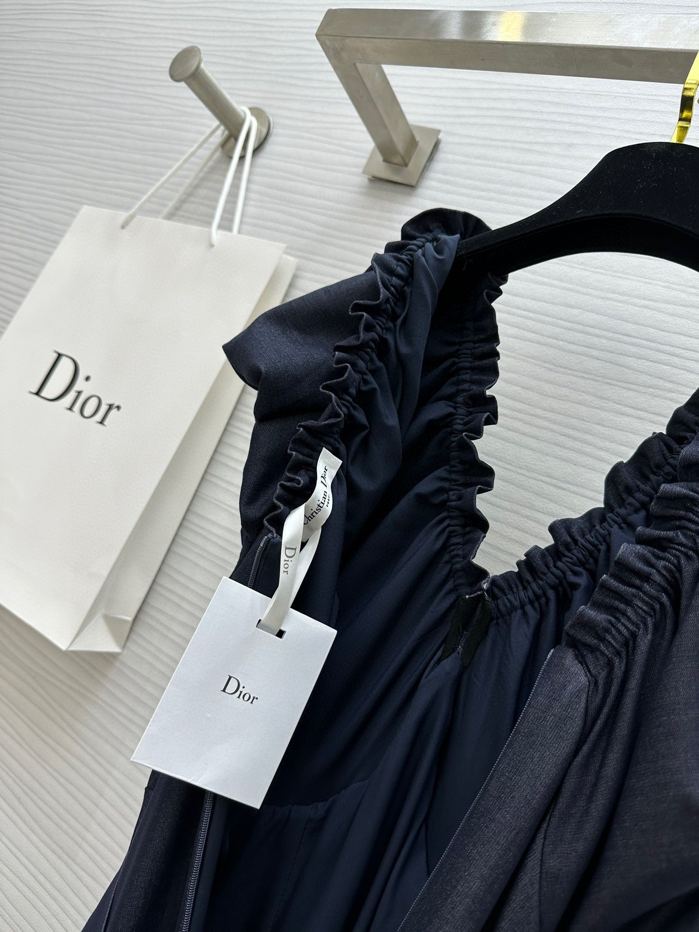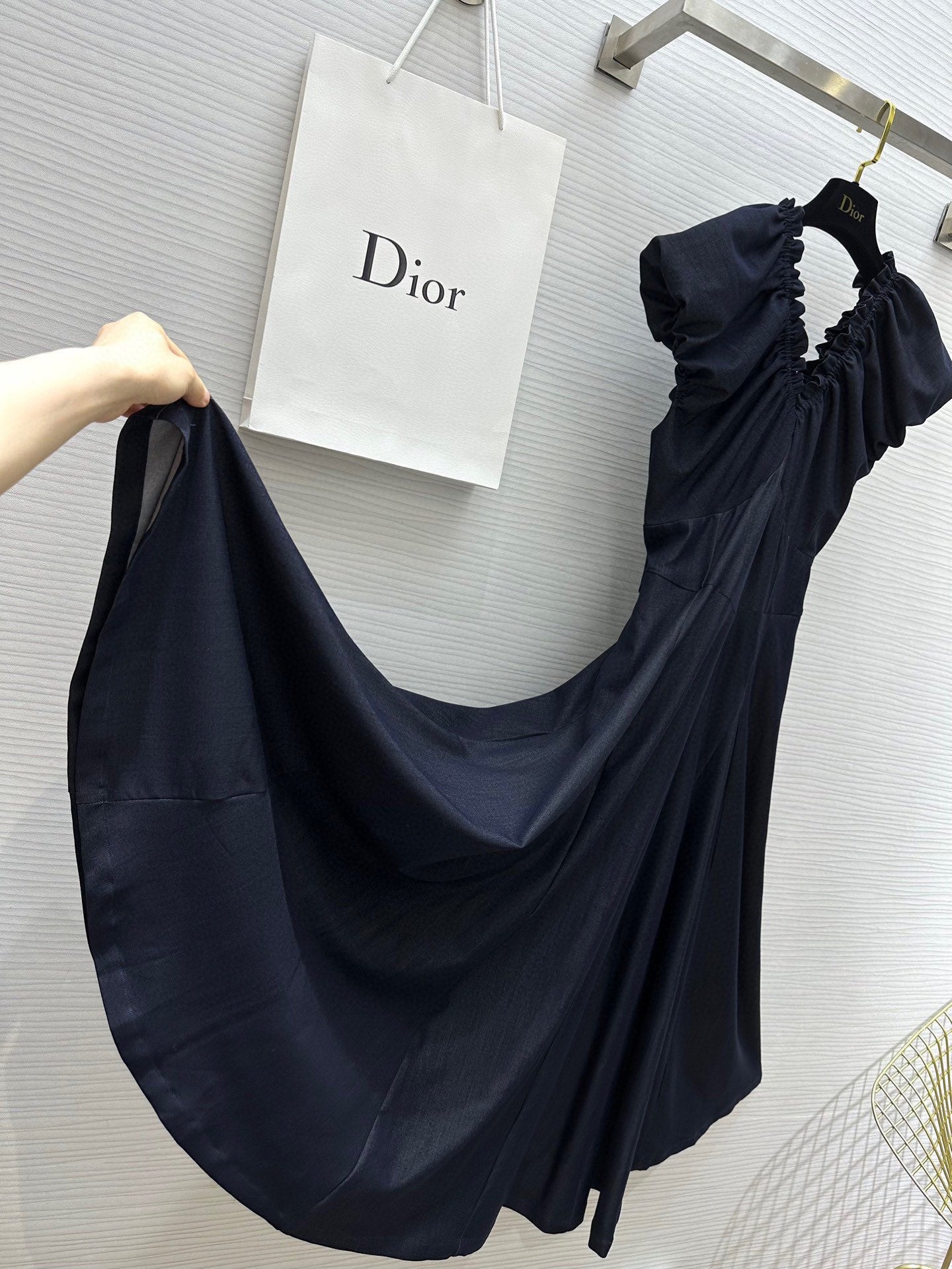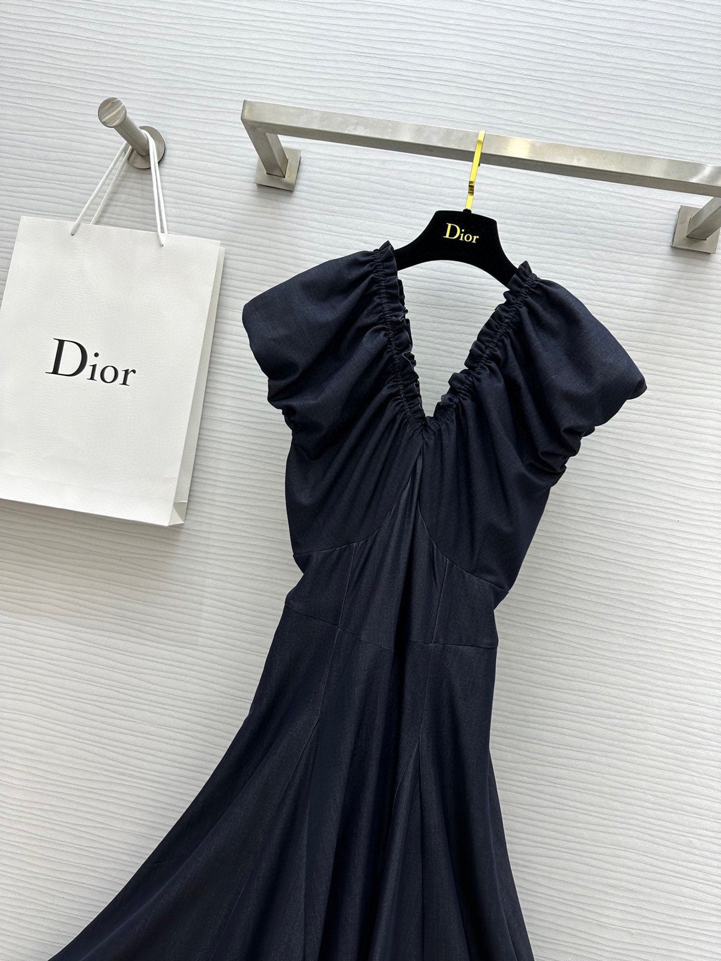 CD 25 V-neck Puff Sleeve Dress black Satin Silk