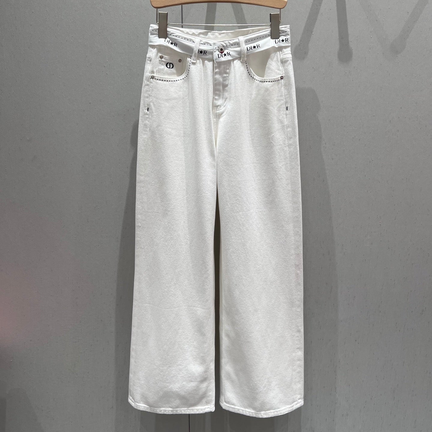 CD 25 Waistband Denim Pants White Cotton 217806