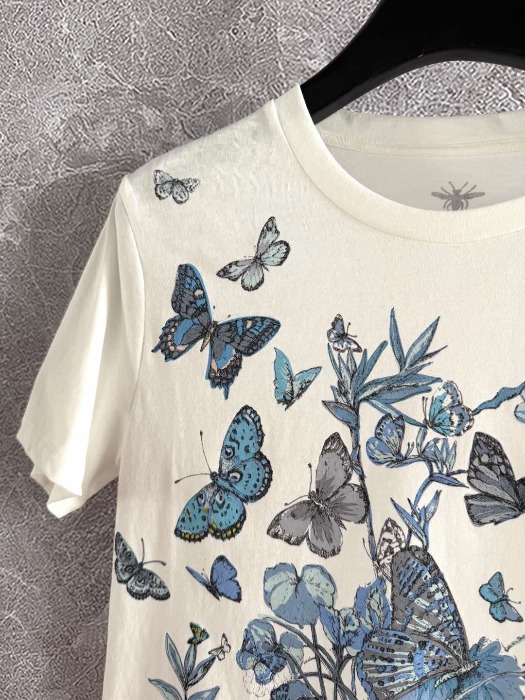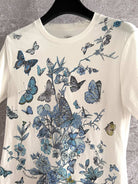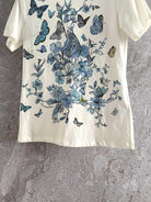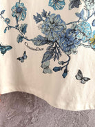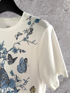 CD Butterfly T-shirt White mix Blue Cotton Linen