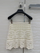 CD Hollow Short Skirt White Cotton Washi