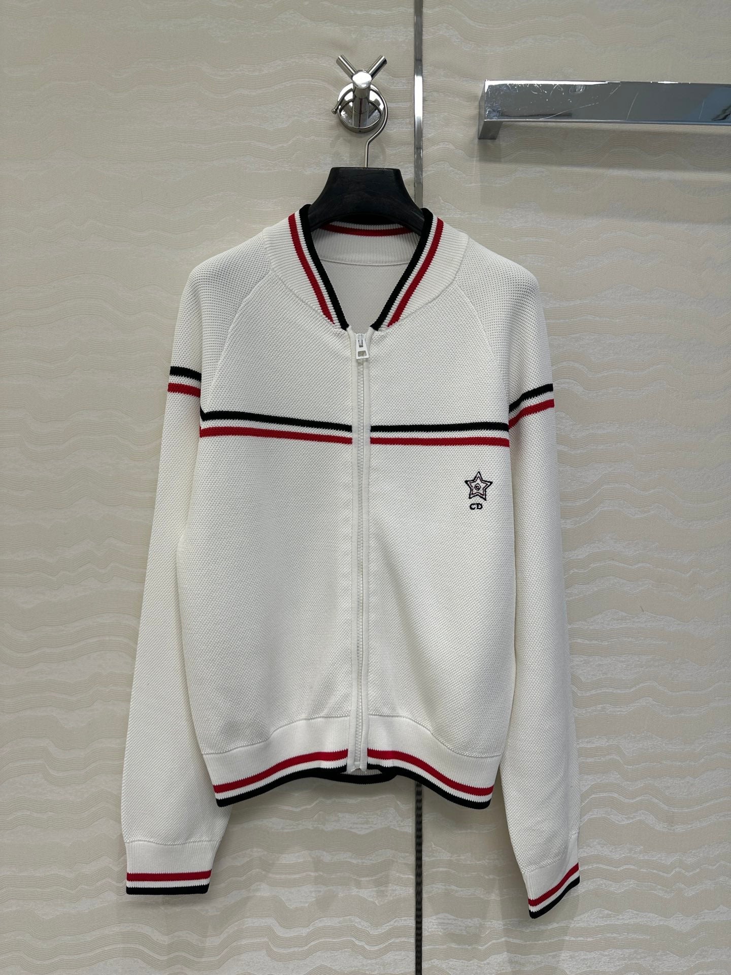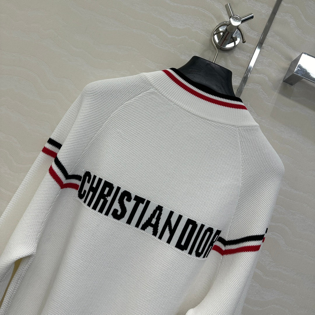 CD Knitted Zipper Jacket White Rayon Polyester