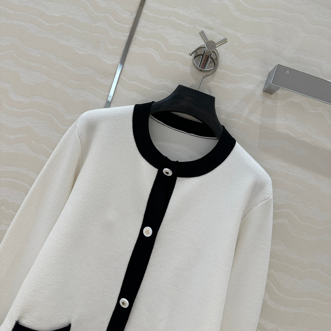 CD Round Neck Cardigan Jacket White Wool Cotton