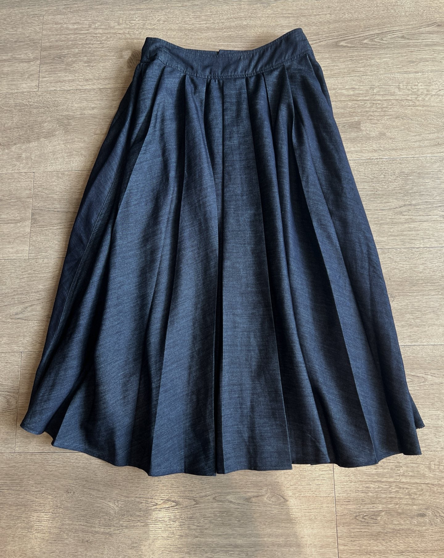 CD Single-breasted Long Umbrella Skirt Blue Cotton