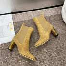 CD Icon Heeled Ankle Boot Beige Light Yellow Suede
