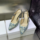 JAdior Slingback Pump 95 Duck Blue Embroidered Cotton with Gold-Tone Metallic Thread