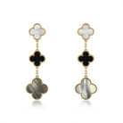 CLOVER EARRINGS GOLD ONYX MOP 3 MOTIF