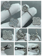 CLOVER 2 MOTIFS DIAMOND PAVED SILVER EARRINGS