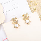 DOUBLE C STAR MOP DIAMONDS GOLD EARRINGS