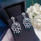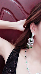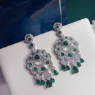 GRA FLOWER SILVER GREEN DIAMOND DROP EARRINGS
