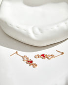 WULU 3 MOTIF DROP DIAMOND PINK GOLD EARRINGS