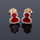 WULU CARNELIAN DIAMOND PINK GOLD STUD EARRINGS