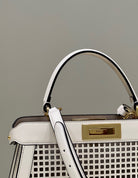 PEEKABOO ISEEU 34 IN WHITE PERFORATED CALFSKIN GOLD HARDWARE