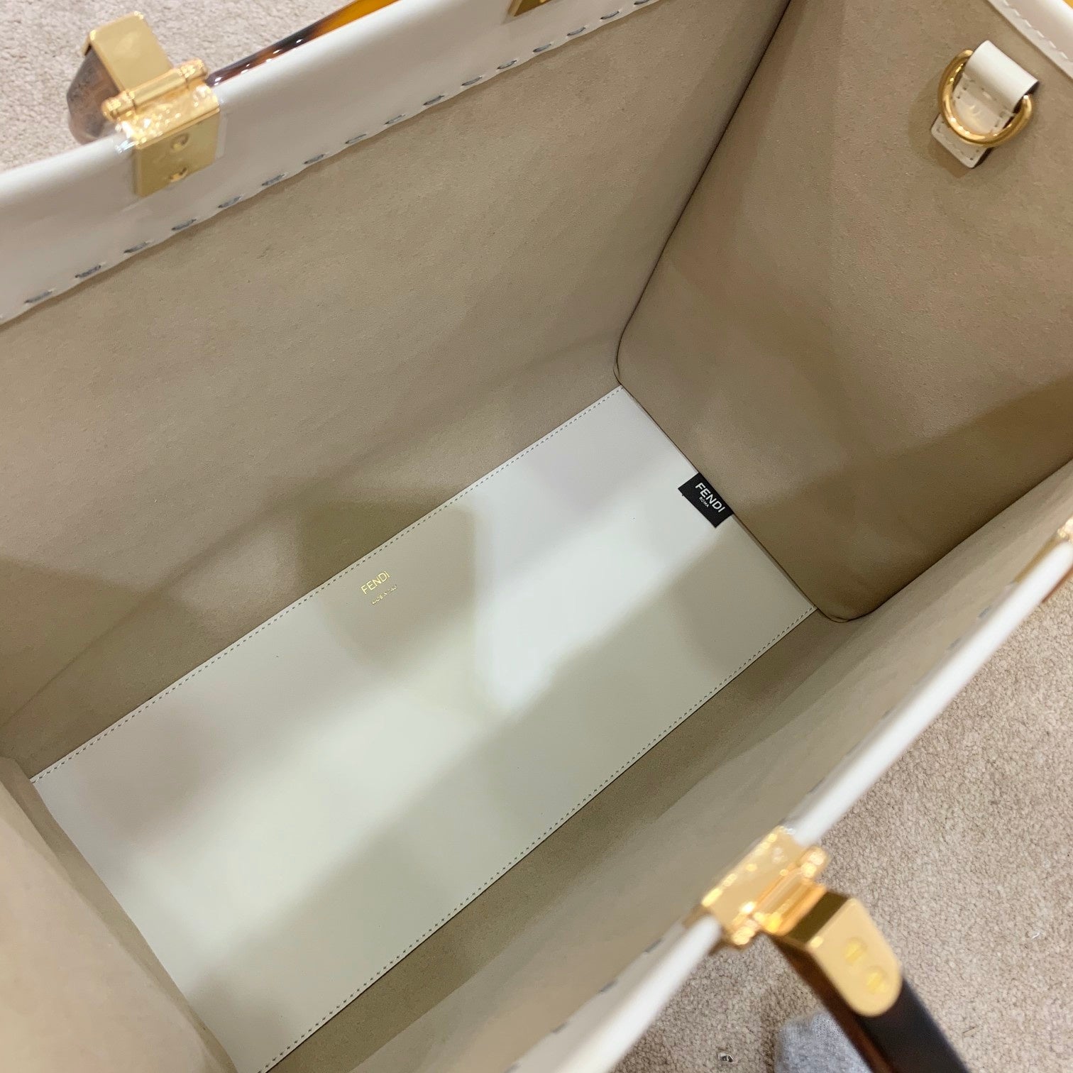 SHINE 40 TOTE BAG IN WHITE EMBOSSED CALFSKIN