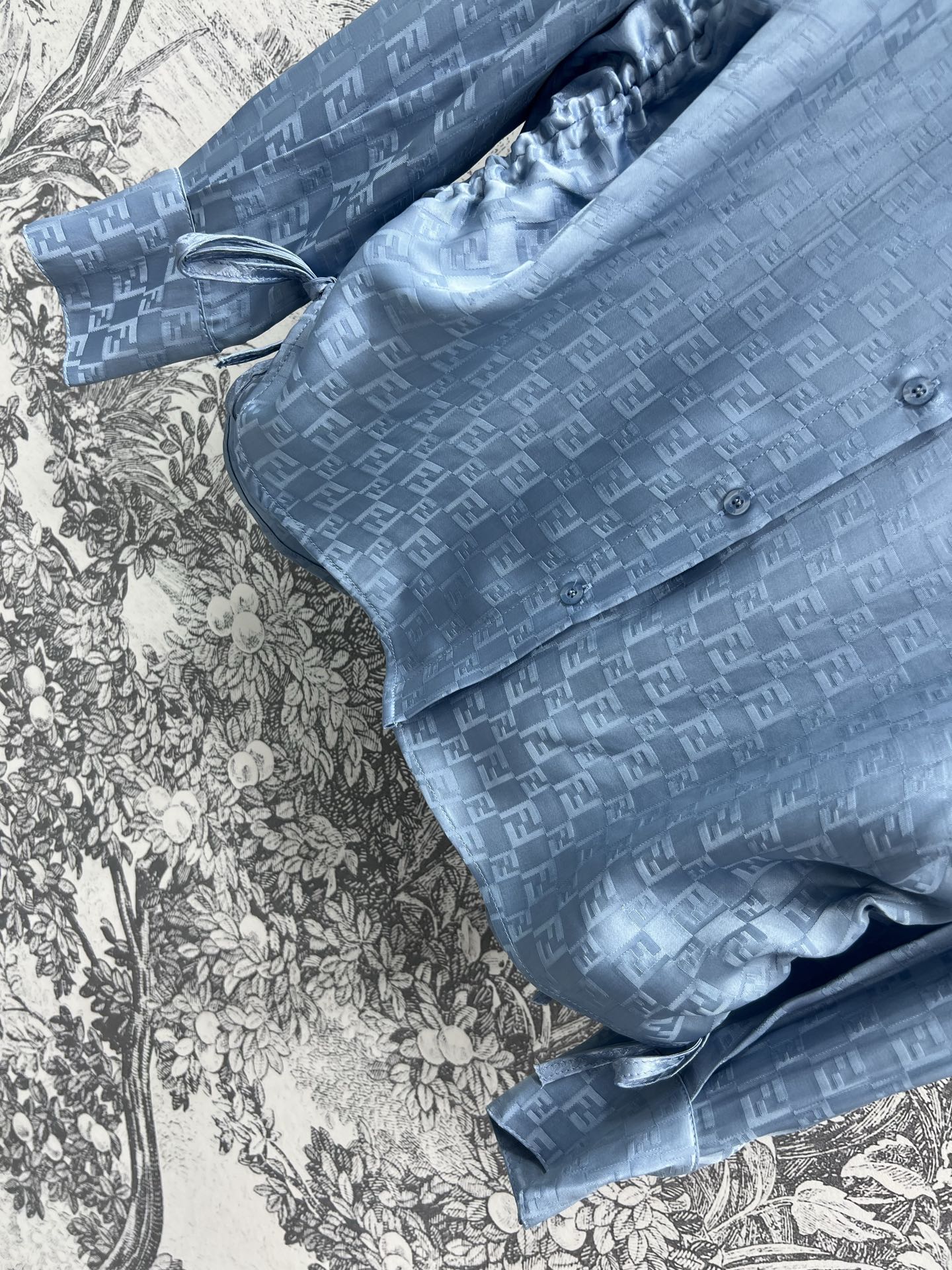Fendi 25 Double F Shirt Blue Viscose Polyester