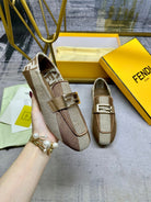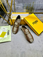 FENDI BAGUETTE LOAFERS IN BEIGE MIX BROWN CANVAS GOLD HARDWARE