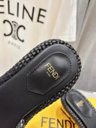 FENDI FFOLD MEDIUM-HEEL SANDALS 45 MM IN BLACK COTTON FIBRE
