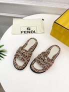 FENDI FLAT SLIPPER IN BROWN MONOGRAM JACQUARD FABRIC WITH GOLD HARDWARE