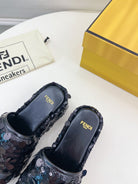 FENDI THICK SOLE 6 CM SEQUIN SLIPPER BLACK