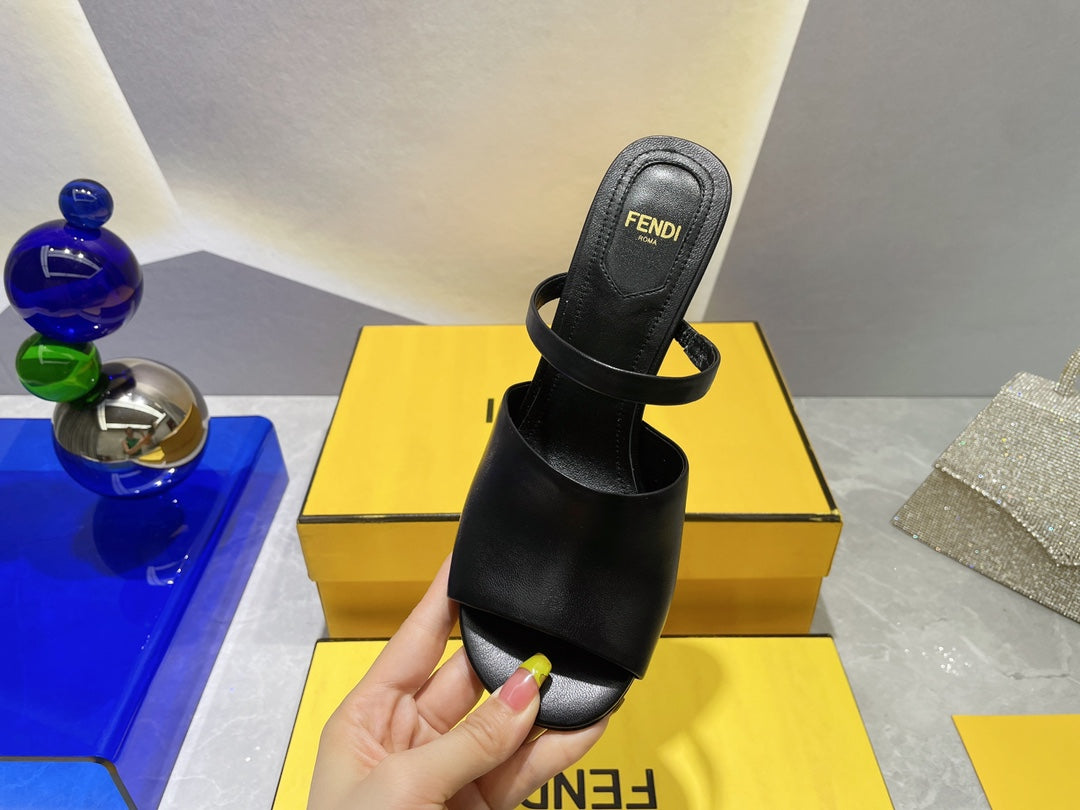 FENDI FIRST 95 MM HIGH-HEELED SANDAL IN BLACK LAMBSKIN GOLD HARDWARE
