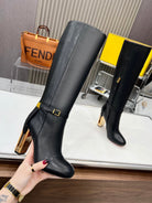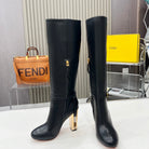 FENDI knee boots high heel black cowhide 521212