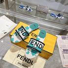 FF Women Signature Slides Turquoise White Canvas Slide