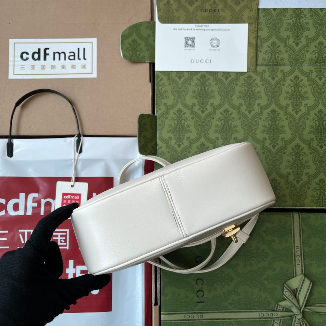 EQUESTRIAN STYLE SHOULDER BAG 21 IN WHITE CALFSKIN GOLD HARDWARE