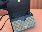 Gucci Emblem Mini Shoulder Bag Beige Blue Canvas Leather 244492