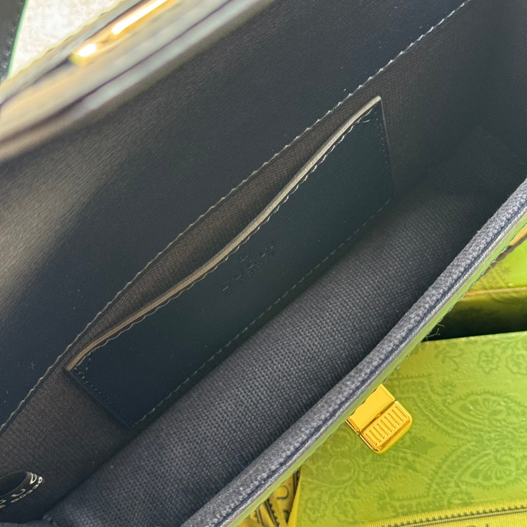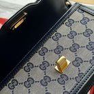 LUCE MINI SHOULDER BAG 20 IN LIGHT GRAY CANVAS AND BLACK CALFSKIN TRIM GOLD HARDWARE