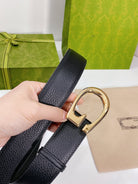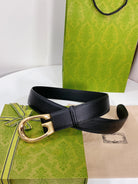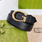 G BELT GOLD BUCKLE BLACK LEATHER 4.0CM