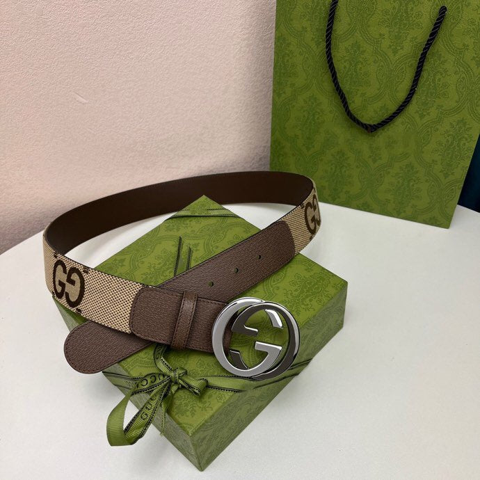 INTERLOCKING G BLACK SILVER BUCKLE 40MM BEIGE CANVAS