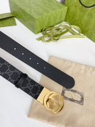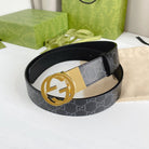 INTERLOCKING G GOLD BUCKLE 38MM BLACK LEAHTER MONOGRAM