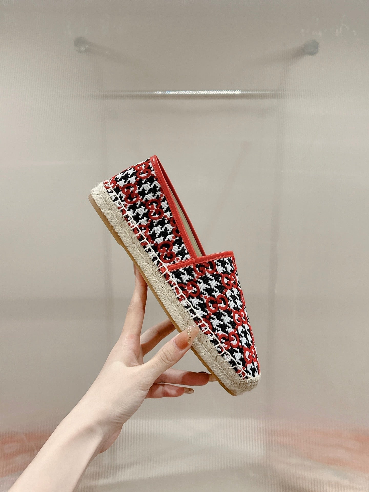 GG ESPADRILLE LOAFER CRIMSON AND BLACK CANVAS