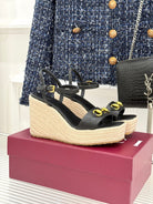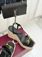 GC Floral Platform Wedge Sandal Black lambskin