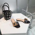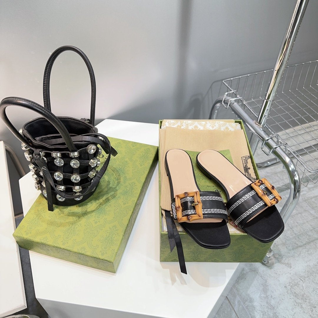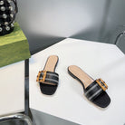 GG BAMBOO BUCKLE FLAT SANDALS BLACK