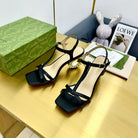 MEDIUM-HEEL SANDAL IN BLACK CALFSKIN WITH RHINSTONES