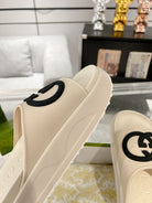 GC 25 Interlocking G 50mm Slide Sandal Beige Black Cowhide 292398