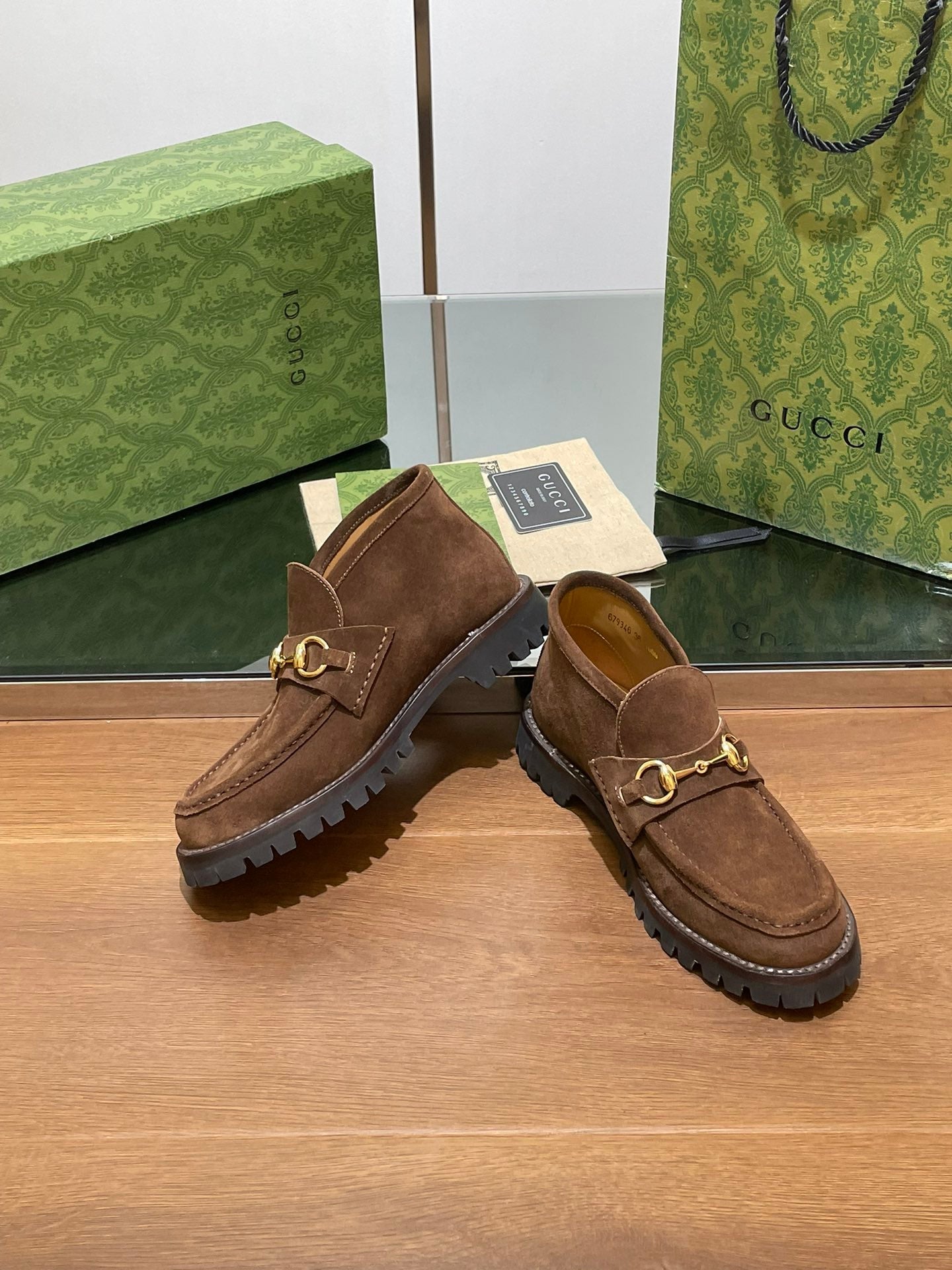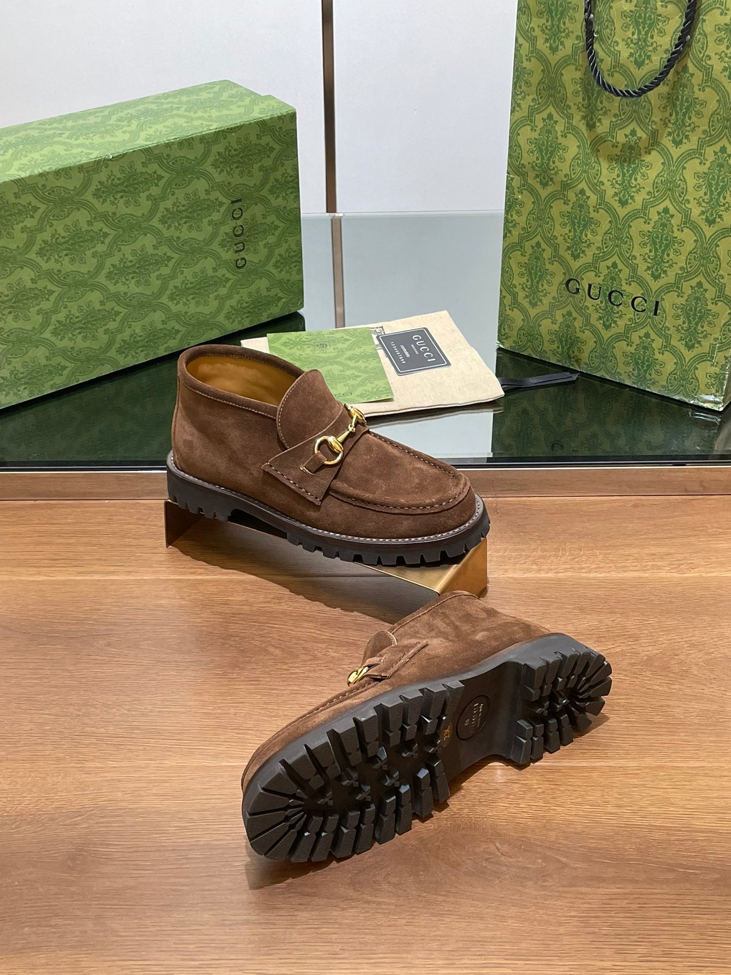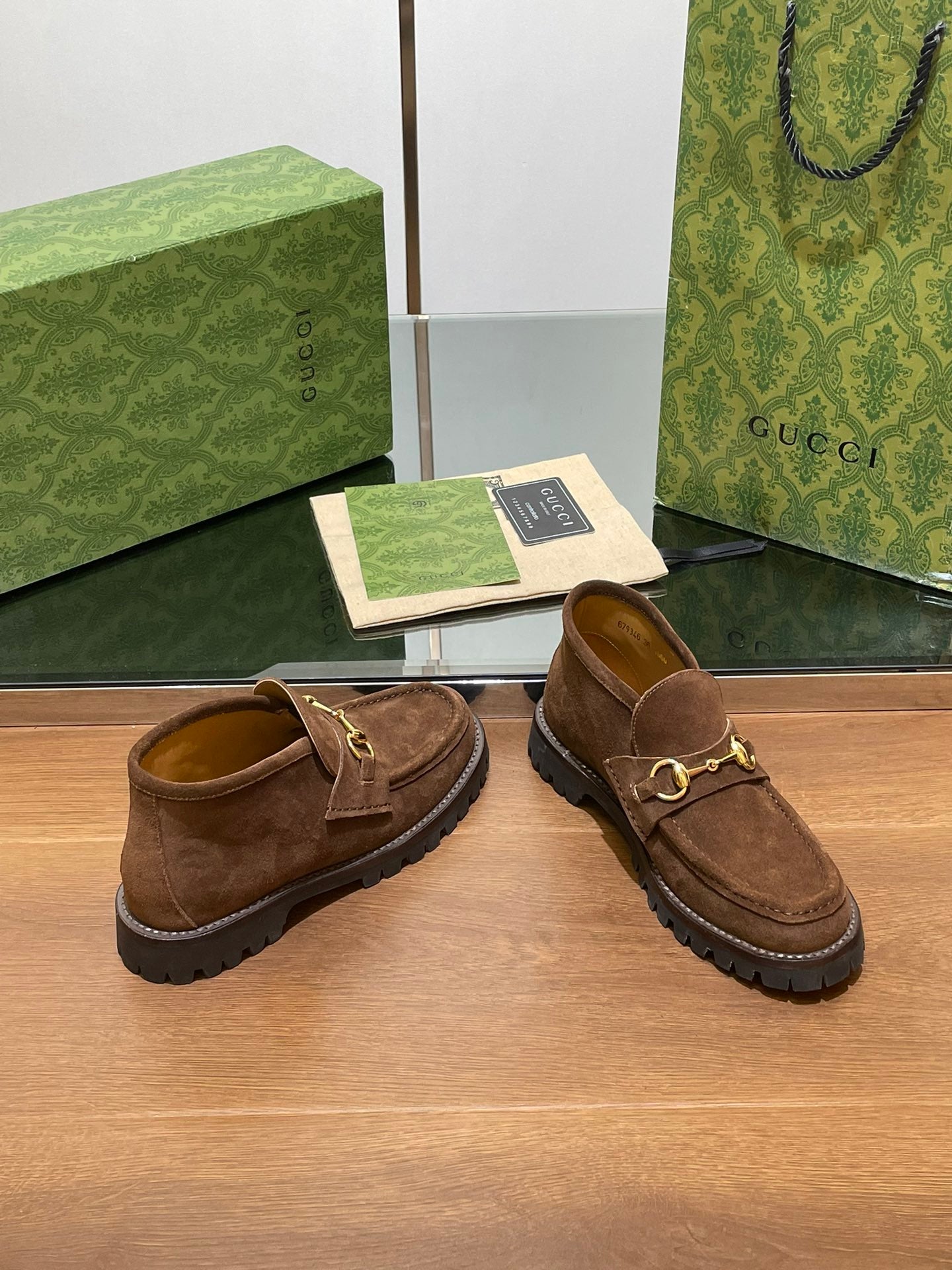 GG Ankle Boot With Horsebit 15 Dark Brown Suede