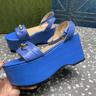 GG HORSEBIT FLATFORM SANDAL COBALT CALFSKIN
