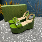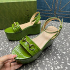GG HORSEBIT FLATFORM SANDAL GREEN CALFSKIN